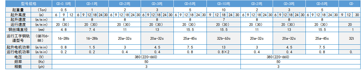 起升高度 | m | 6 | 9 | 12 | 16 | 24 | 32 | 8 | 10 | 16 | 20 | 6 | 8 | 12 | 16 | 12 | 16 | 24 | 32 | 36 | 42 | 48 | ||||||||||||||||